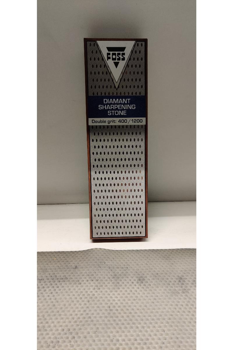 Praktisk lite bryne med to sider. Ett grovt og ett fint. Tar liten plass.